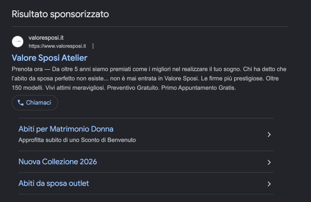 Su Google Ads abbiamo intercettato la domanda più consapevole, lavorando su keyword ad alta intenzione e su una struttura di campagne pensata per trasformare la ricerca in opportunità per gli atelier.